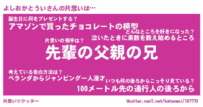 | 胡散臭い通販商品みたいなあだ名 | 『モテモテ間違いなし水晶球…その名も「よしおかとうい」』 |