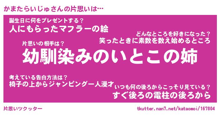 | 女子向けラノベタイトル風あだ名 | 『(仮)かまたらいじゅのやんごとなき事情』 |