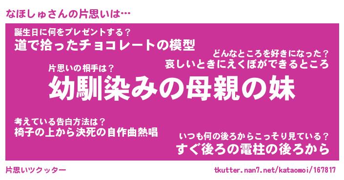 | ポケモン風あだ名 | 『ナホチュウ』『ナホシダネ』 |