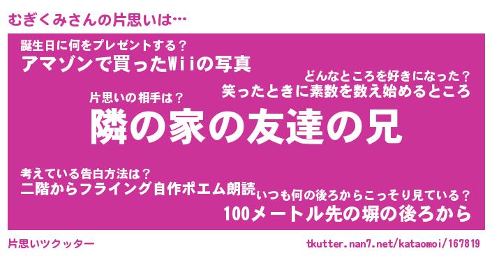 | ヘコむあだ名 | 『むぎっふぃ~』『酢こんぶ』 |