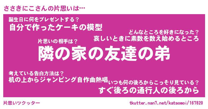 | ポケモン風あだ名 | 『ササチュウ』『ササキダネ』 |