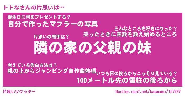 | ヘコむあだ名 | 『トトふぇ~』『つくし』 |