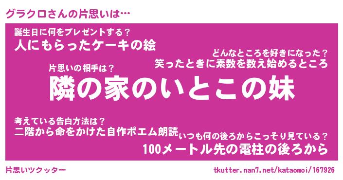 | 意味不明あだ名 | 『ペロリングラクロ』『永久保存グラクロ』 |