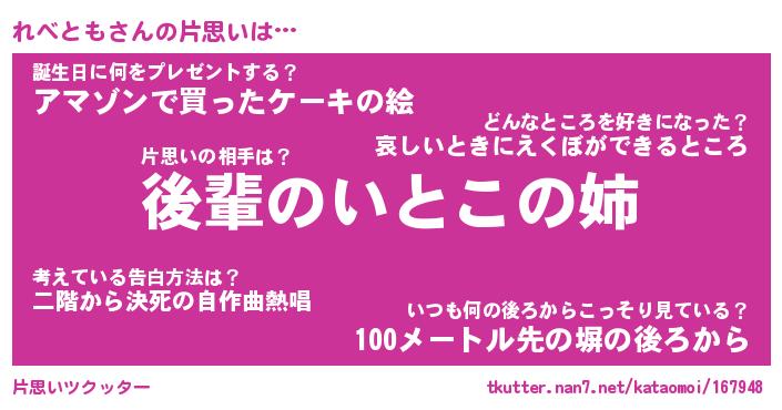 | ヘコむあだ名 | 『れべもー』『酢こんぶ』『れべ太郎』 |