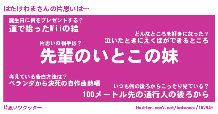 | ファンタジー風あだ名 | 『ハタフェル』『エターナルハタケワマー』 |