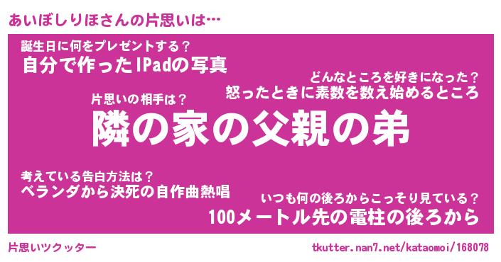 | 胡散臭い通販商品みたいなあだ名 | 『必ず成功する水晶球…その名も「あいぼしりほ」』 |