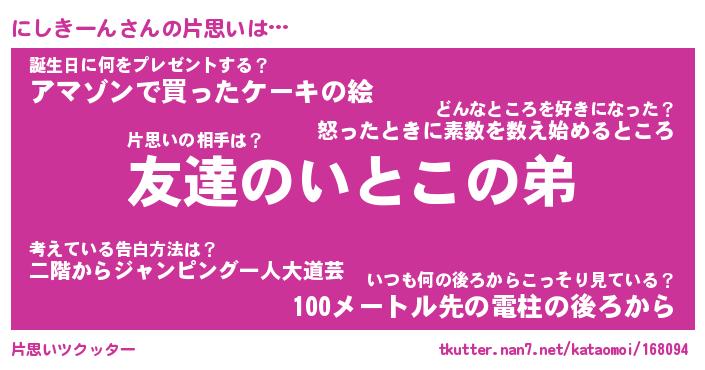 | ポケモン風あだ名 | 『ニシチュウ』『ニシキダネ』 |