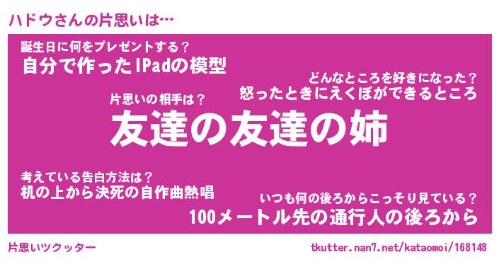 | ヘコむあだ名 | 『ハドっふぃ~』『つくし』『ハドお』 |