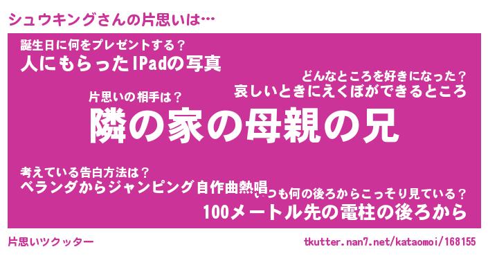 | 胡散臭い通販商品みたいなあだ名 | 『必ず成功するブレスレット…その名も「シュウキング」』 |