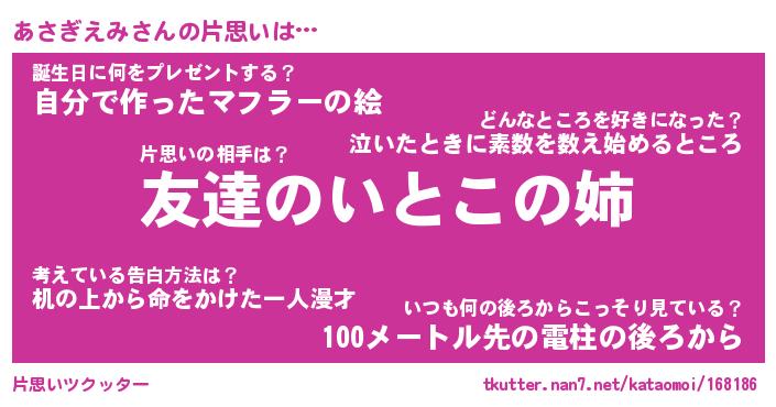 | ヘコむあだ名 | 『あさにゅー』『つくし』『あさを』 |