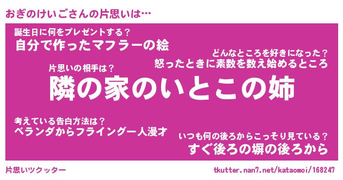 | ツイッター | おぎのけいごさんのツイッターID『kikurage_kun』 |