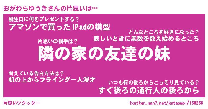| 胡散臭い通販商品みたいなあだ名 | 『必ず成功する霊験あらたかなお札…その名も「おがわらゆうき」』 |
