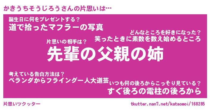 | 男性向けラノベタイトル風あだ名 | 『かきうちそうじろうの憂鬱』 |
