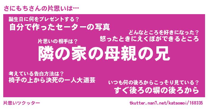 | 意味不明あだ名 | 『ペロリンさにもち』『永久保存さにもち』 |