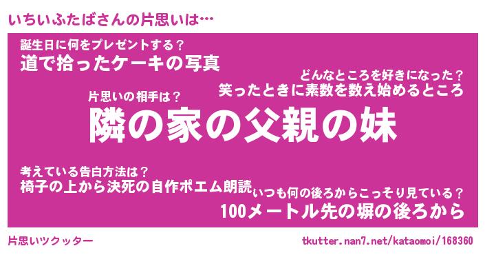 | 胡散臭い通販商品みたいなあだ名 | 『必ず成功する水晶球…その名も「いちいふたば」』 |