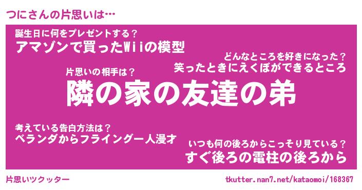 | ヘコむあだ名 | 『つにっふぃ~』『なまこ酢』 |
