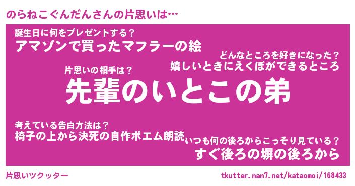 | ヘコむあだ名 | 『のらにゅー』『なまこ酢』 |