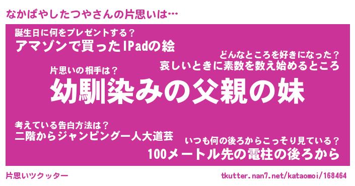 | 男性向けラノベタイトル風あだ名 | 『なかばやしたつやの憂鬱』 |