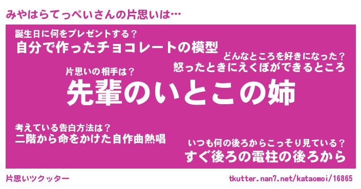 | ヘコむあだ名 | 『みやにゅー』『つくし』『みやっぺ』 |
