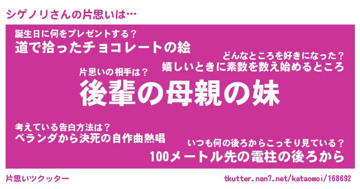 | 意味不明あだ名 | 『ペロリンシゲノリ』『永久保存シゲノリ』 |