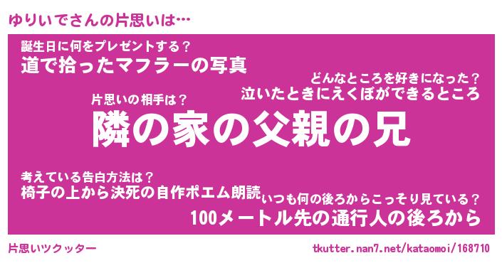 | ヘコむあだ名 | 『ゆりにゅー』『牛乳』『ゆりを』 |