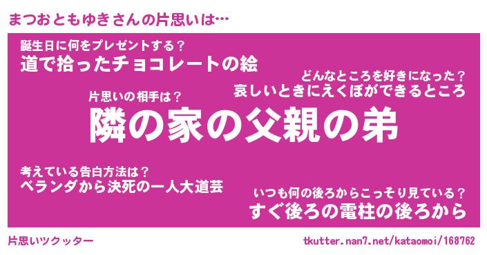 | 胡散臭い通販商品みたいなあだ名 | 『モテモテ間違いなし水晶球…その名も「まつおともゆき」』 |
