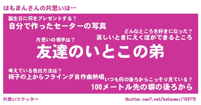 | 意味不明あだ名 | 『ペロリンはもまん』『永久保存はもまん』 |