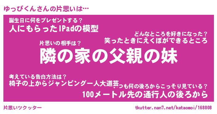 | 胡散臭い通販商品みたいなあだ名 | 『モテモテ間違いなし水晶球…その名も「ゆっぴくん」』 |