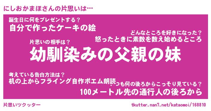 | 胡散臭い通販商品みたいなあだ名 | 『必ず成功するブレスレット…その名も「にしおかまほ」』 |
