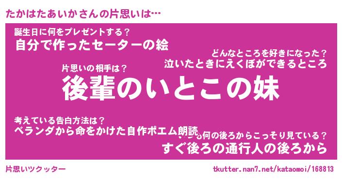 | ヘコむあだ名 | 『たかにゅー』『なまこ酢』 |