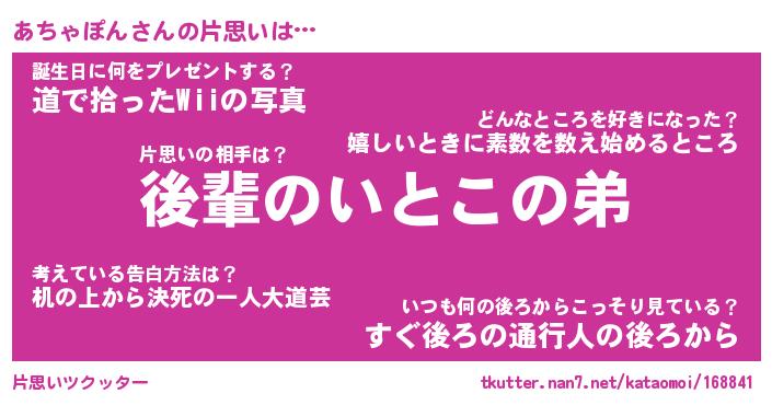 | 胡散臭い通販商品みたいなあだ名 | 『億万長者になれる水晶球…その名も「あちゃぽん」』 |
