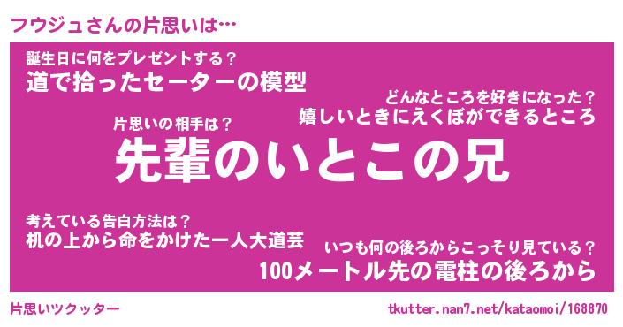 | ヘコむあだ名 | 『フウにゅー』『つくし』『フウお』 |