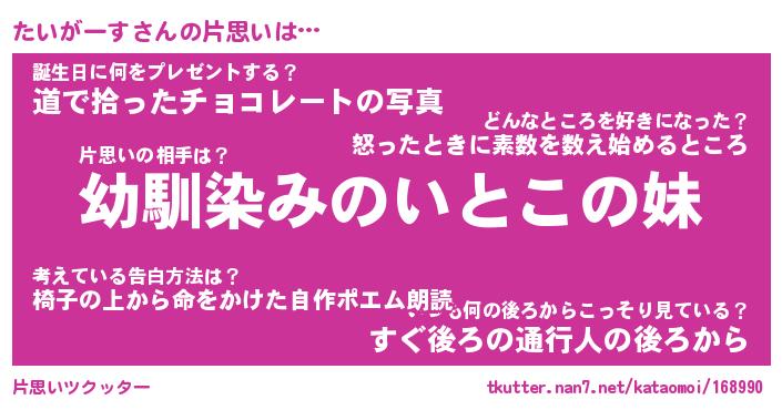 | ヘコむあだ名 | 『たいもー』『牛乳』『たいぷりん』 |
