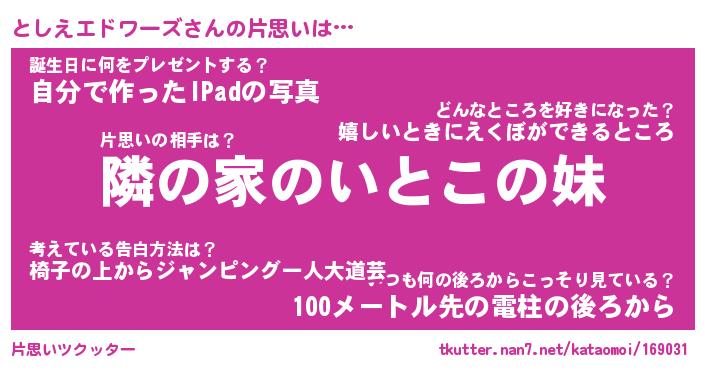 | 胡散臭い通販商品みたいなあだ名 | 『必ず成功する水晶球…その名も「としえエドワーズ」』 |