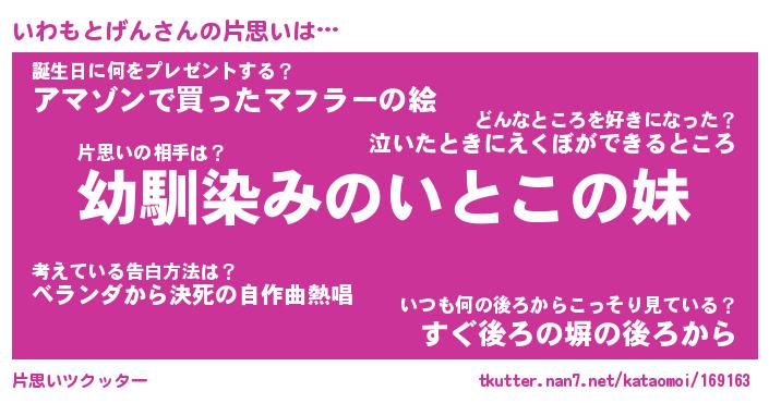 | 男性向けラノベタイトル風あだ名 | 『いわもとげんの憂鬱』 |