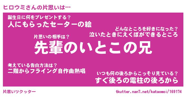 | ヘコむあだ名 | 『ヒロもー』『豆乳』『ヒロぷりん』 |