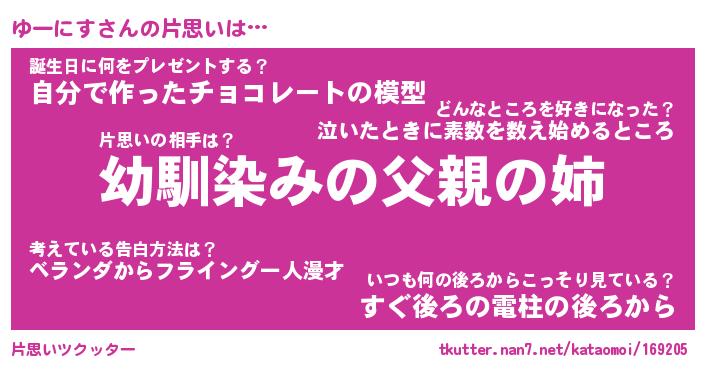 | ヘコむあだ名 | 『ゆーにゅー』『つくし』 |