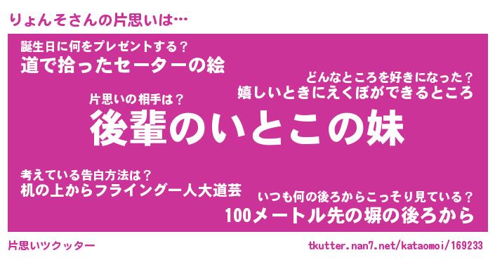 | ヘコむあだ名 | 『りょにゅー』『牛乳』『りょっ子』 |