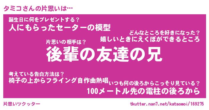| 意味不明あだ名 | 『ペロリンタミコ』『タミコフォーエバー』 |