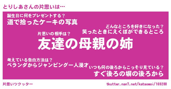 | ヘコむあだ名 | 『とりふぇ~』『牛乳』『とりお』 |