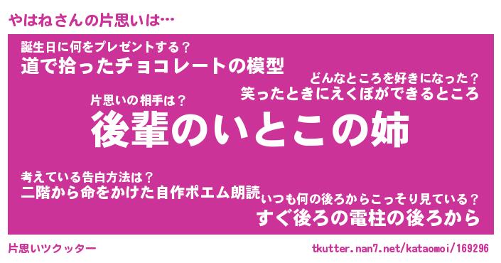 | 意味不明あだ名 | 『ペロリンやはね』『やはねフォーエバー』 |
