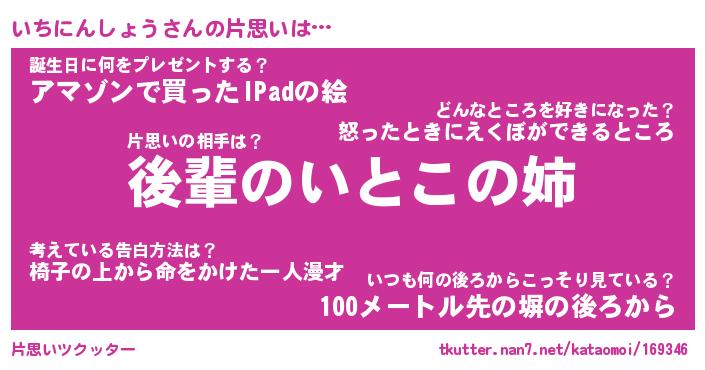 | ヘコむあだ名 | 『いちもー』『なまこ酢』『いちお』 |