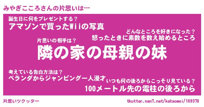 | ヘコむあだ名 | 『みやにー』『酢こんぶ』『みやお』 |