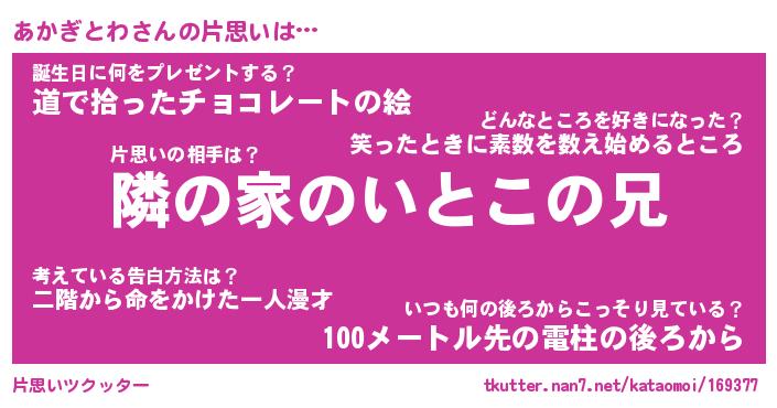 | 胡散臭い通販商品みたいなあだ名 | 『必ず成功する水晶球…その名も「あかぎとわ」』 |