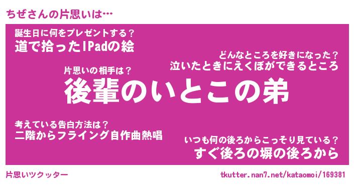| ヘコむあだ名 | 『ちぜもー』『酢こんぶ』『ちぜっ子』 |