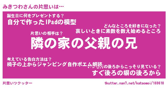 | 胡散臭い通販商品みたいなあだ名 | 『必ず成功するブレスレット…その名も「みきつわ」』 |