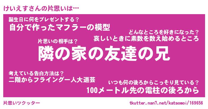 | ヘコむあだ名 | 『けいもー』『酢こんぶ』『けい太郎』 |