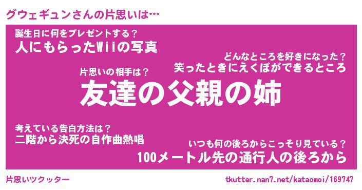 | ヘコむあだ名 | 『グウふぇ~』『なまこ酢』 |