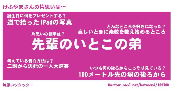 | ヘコむあだ名 | 『けふもー』『豆乳』『けふっ子』 |