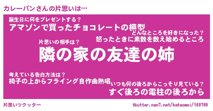 | ファンタジー風あだ名 | 『カレフェル』『エターナルカレーパンー』 |
